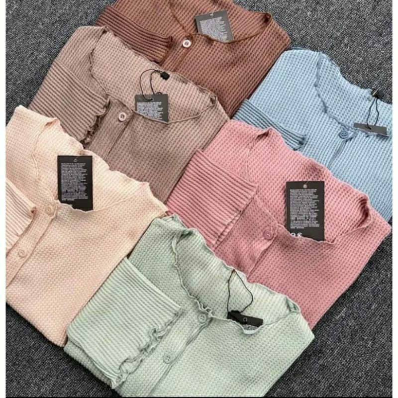 Cardigan Rajut Crop Waffer Mdn Atasan Rajut Tebal Premium