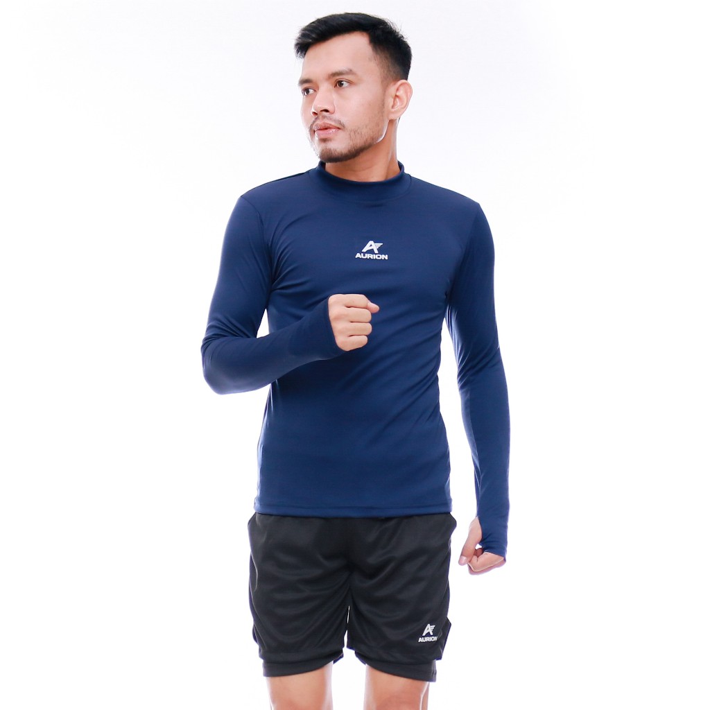AURION Baselayer Lengan Panjang Manset Pria Atasan Olahraga Sepakbola Futsal Lari Gym