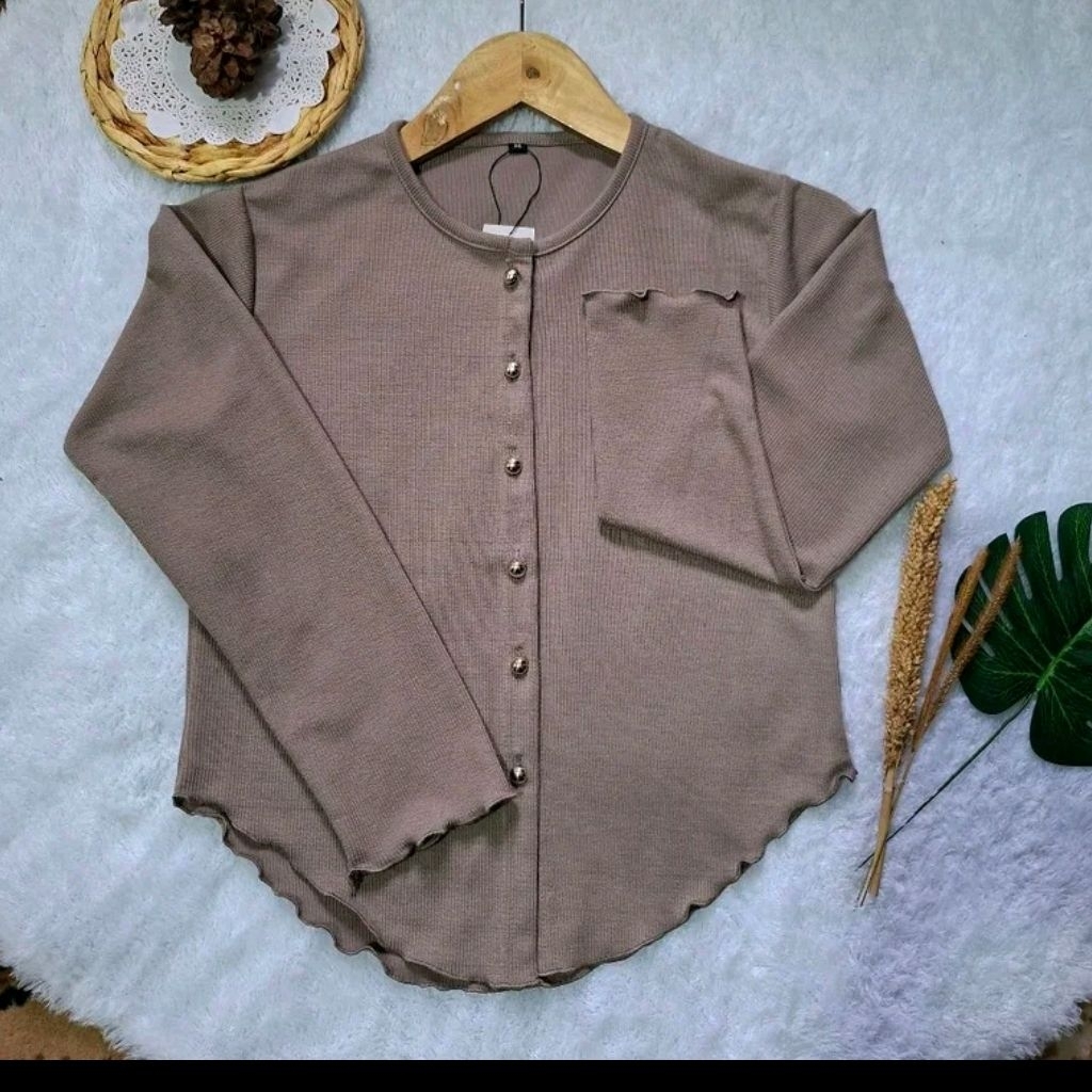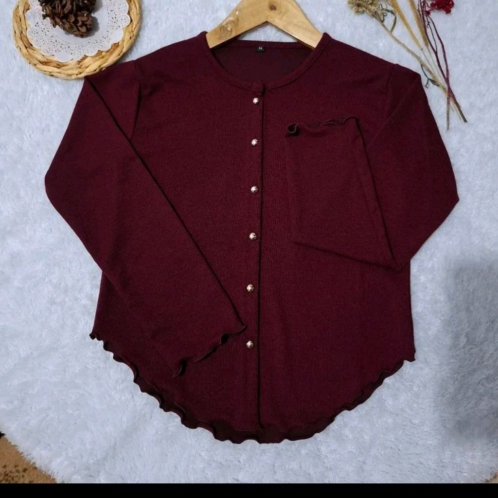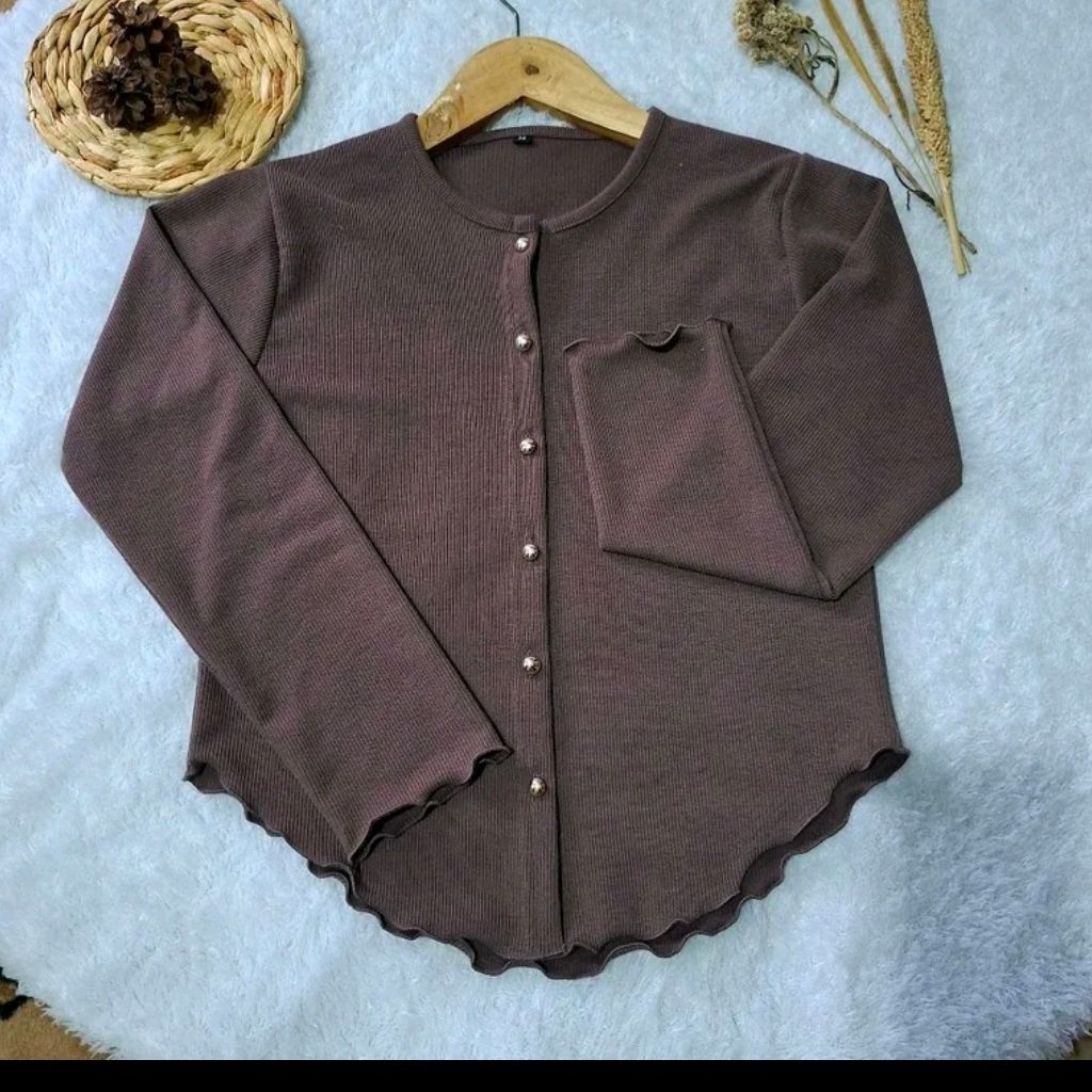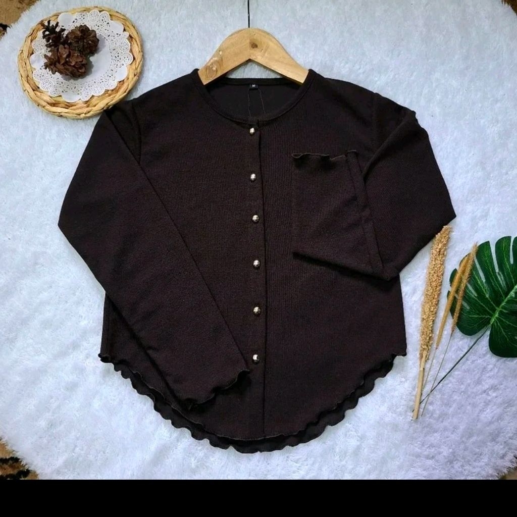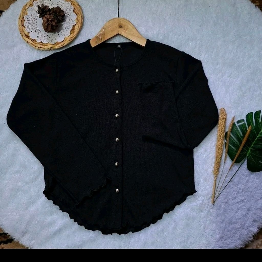 Cardigan Rajut Wanita B7 Nechi Atasan Basic Crop Top Kancing Gold Button Lengan Panjang