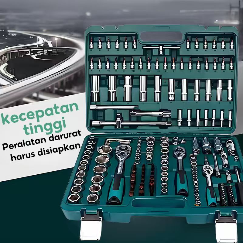 Tool kit Set alat Kunci Sok set 216 Pcs Kunci Ring Pas Set 72gigi Gagang Ratchet Alat Perbaikan Mobil Toolbox