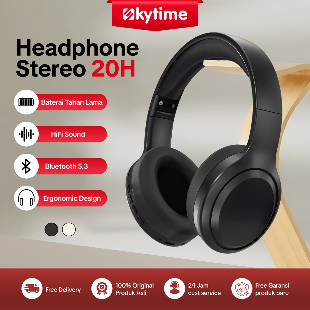 Skytime TH20 Headphone Bluetooth 5.3 Dual HIFI Stereo Bass Wireless Earphone Gaming Headset With Microphone Low Latency