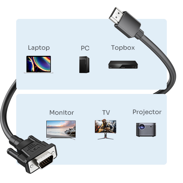 [PROMO] ROBOT RHVC02 Kabel HDMI To VGA Cable Male To Male 1080P Full HD 2 MeterGaransi Resmi 1 Tahun