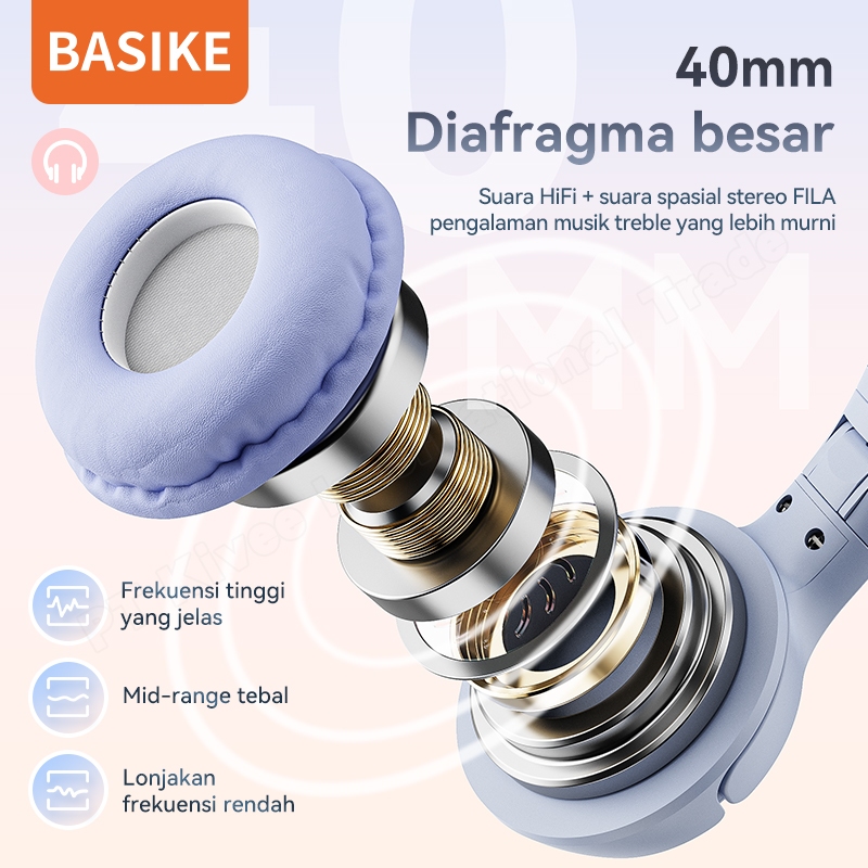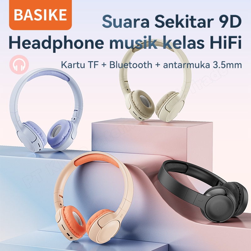 BASIKE Headphone Wireless Bluetooth Headset Gaming 9D HIFI Music Stereo Bass Makaron Original