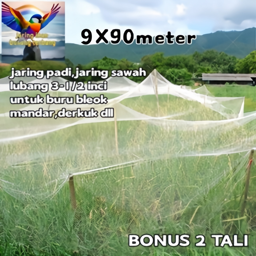 Jaring Burung Padi Sawah 0.12Mm 9X90M Jaring Burung Perkutut Jaring Tekukur Jaring Burung Padi