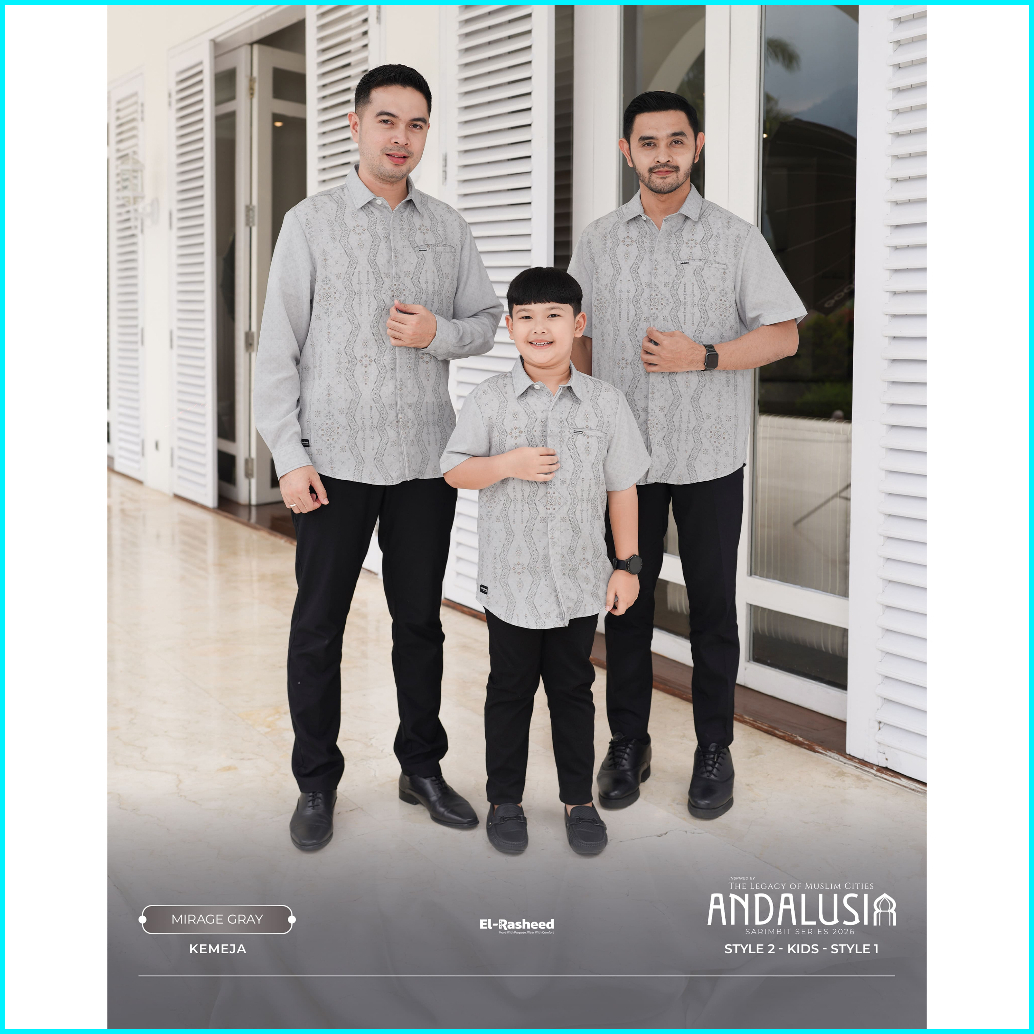 Ready Stock Sarimbit 2026 Andalusia Series - Mirage Gray --- Family Set Baju Lebaran Keluarga