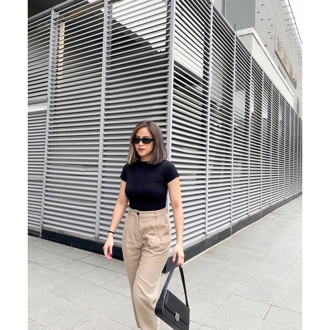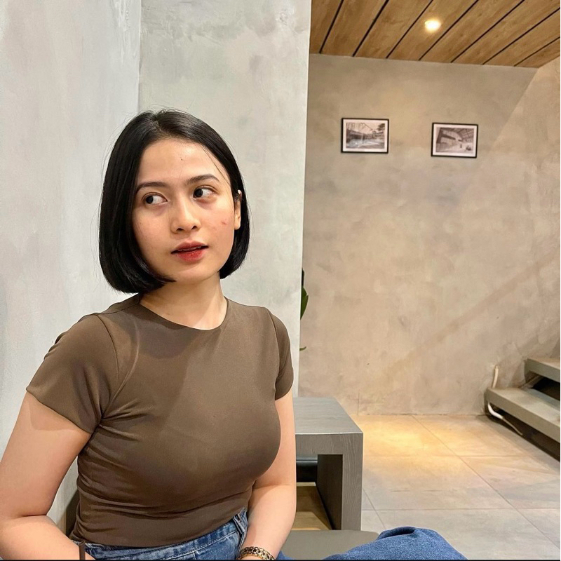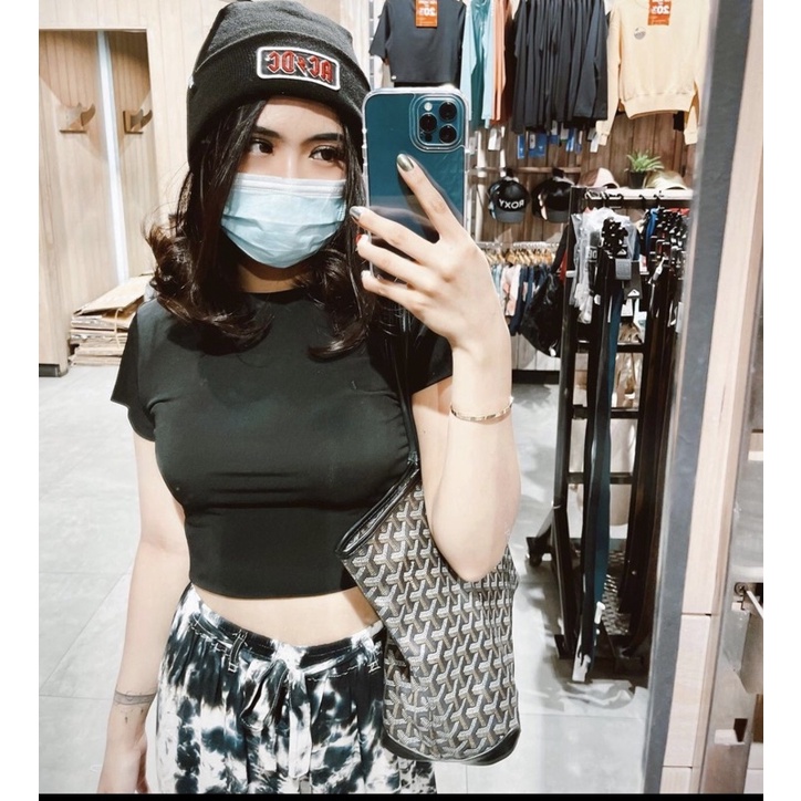 Kaos Crop Top Alby Korea Double Layer Atasan Cewek Kekinian