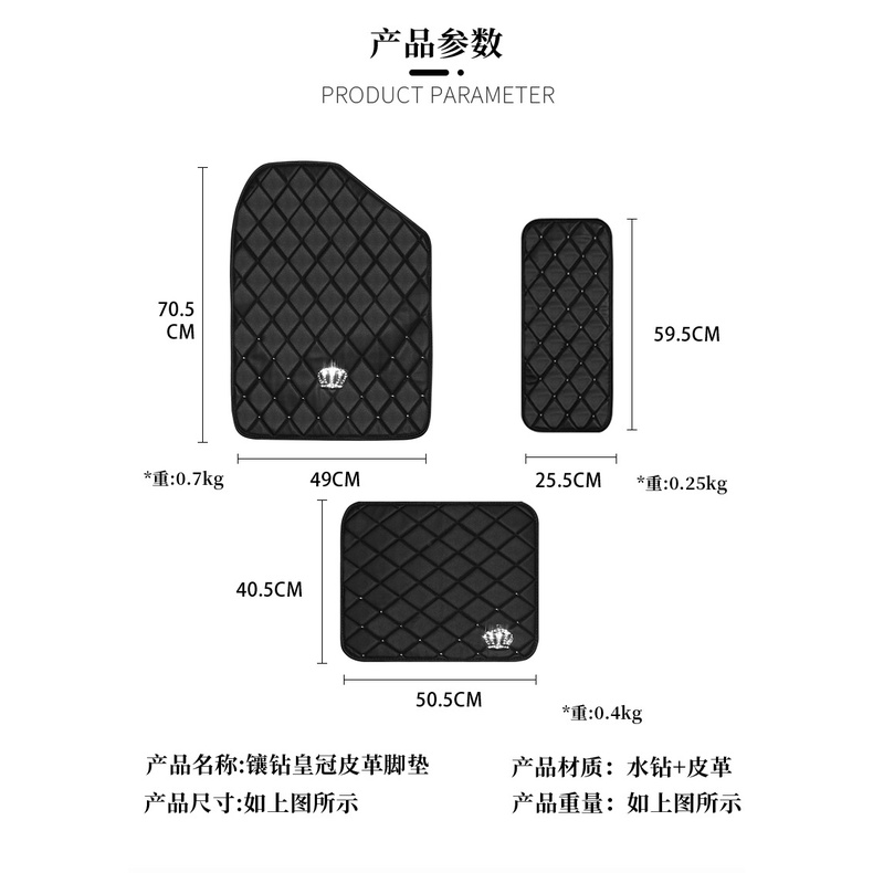 Karpet Mobil DAD Kulit Luxury Interior Mats Crown 8pc / 3 Baris