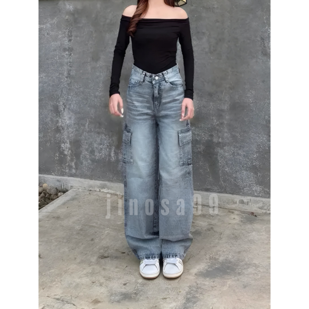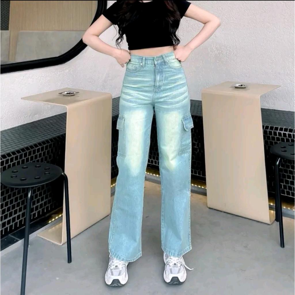 Celana Jeans Cargo Baggy Highwaist – Oversize Korean Style Denim Unisex Terbaru