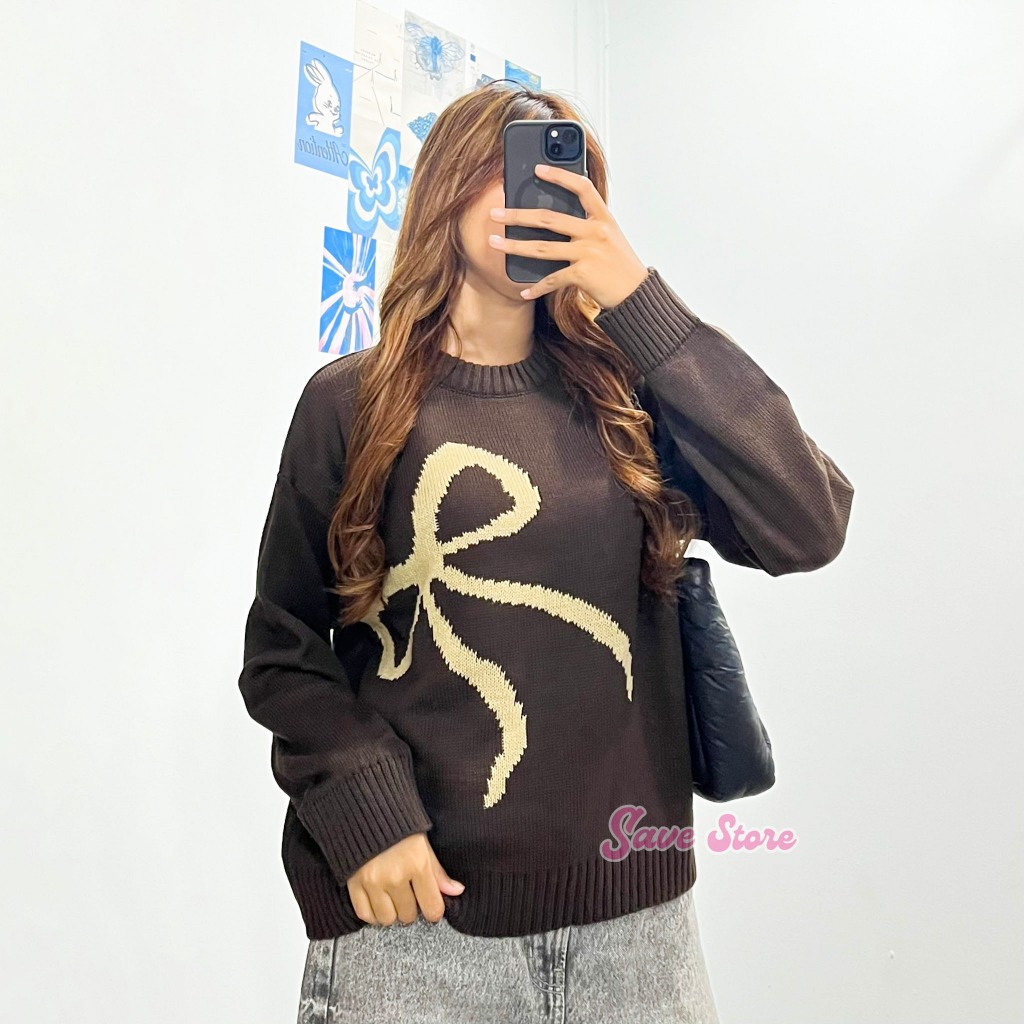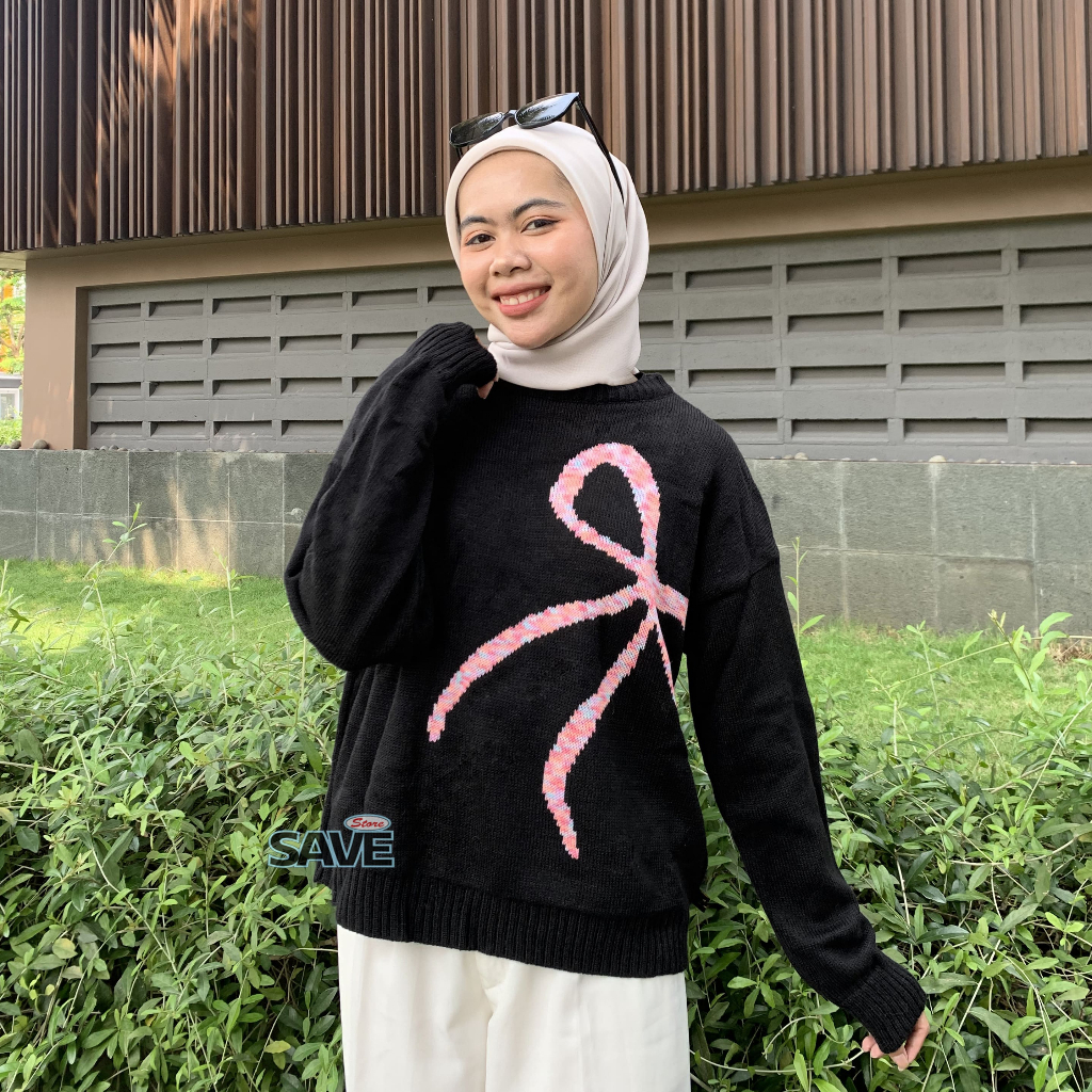Atasan Wanita Jenny Sweater Oversize Knit Sweater Rajut Wanita Motif Pita