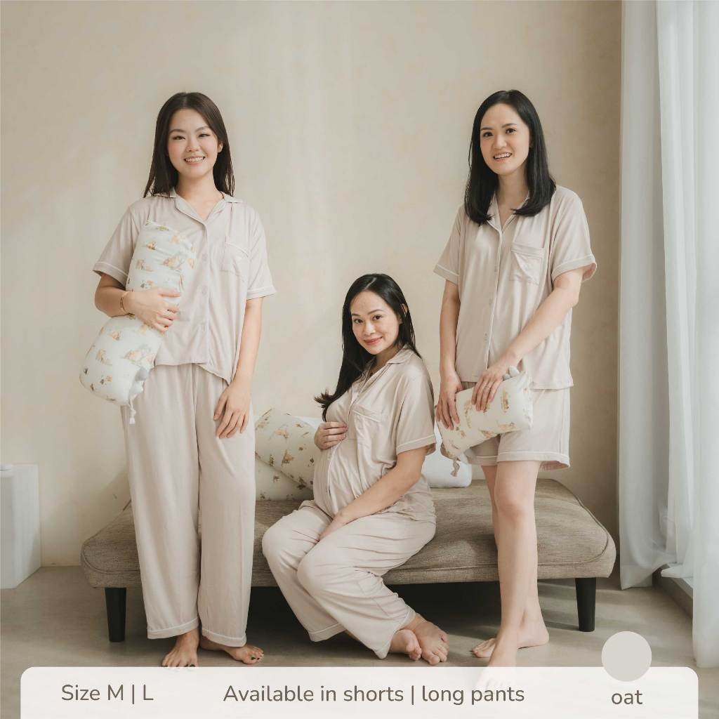 PETIT BEARY - Women Short-Sleeve Bamboo Pyjamas Shorts / Long Pants - Piyama Bamboo Wanita Celana Pendek Panjang
