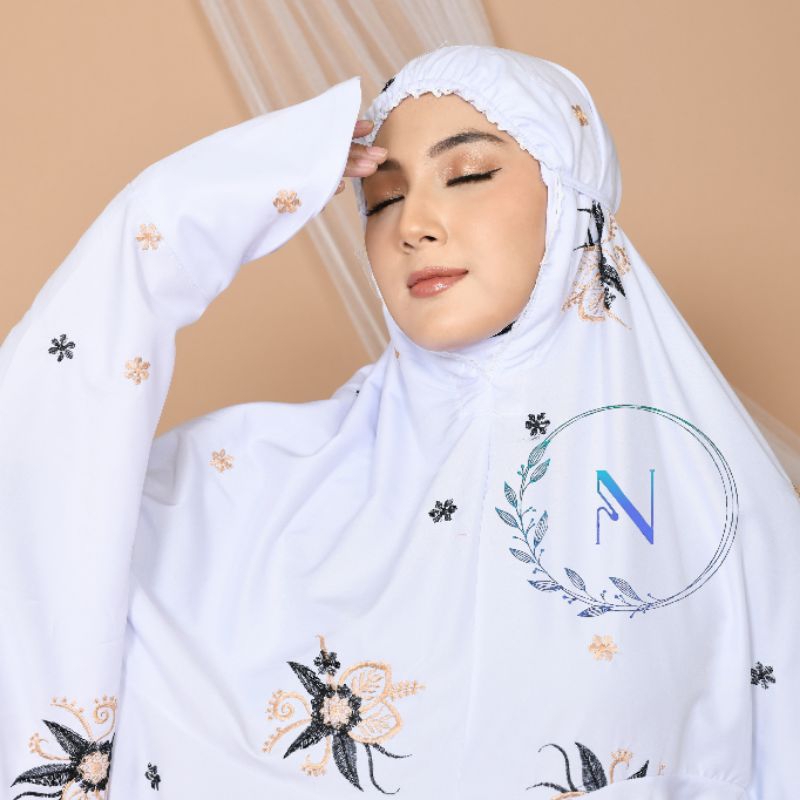 BY NADEERA MUKENA-Mukena Terusan Dewasa Katun Bordir Bunga Serangkai Mukena Langsungan Dewasa