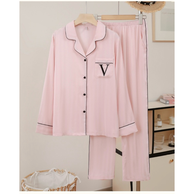 (8131) Celeste | Diane Sally | Baju tidur lengan panjang pakaian piyama pajama satin sutra lembut impor