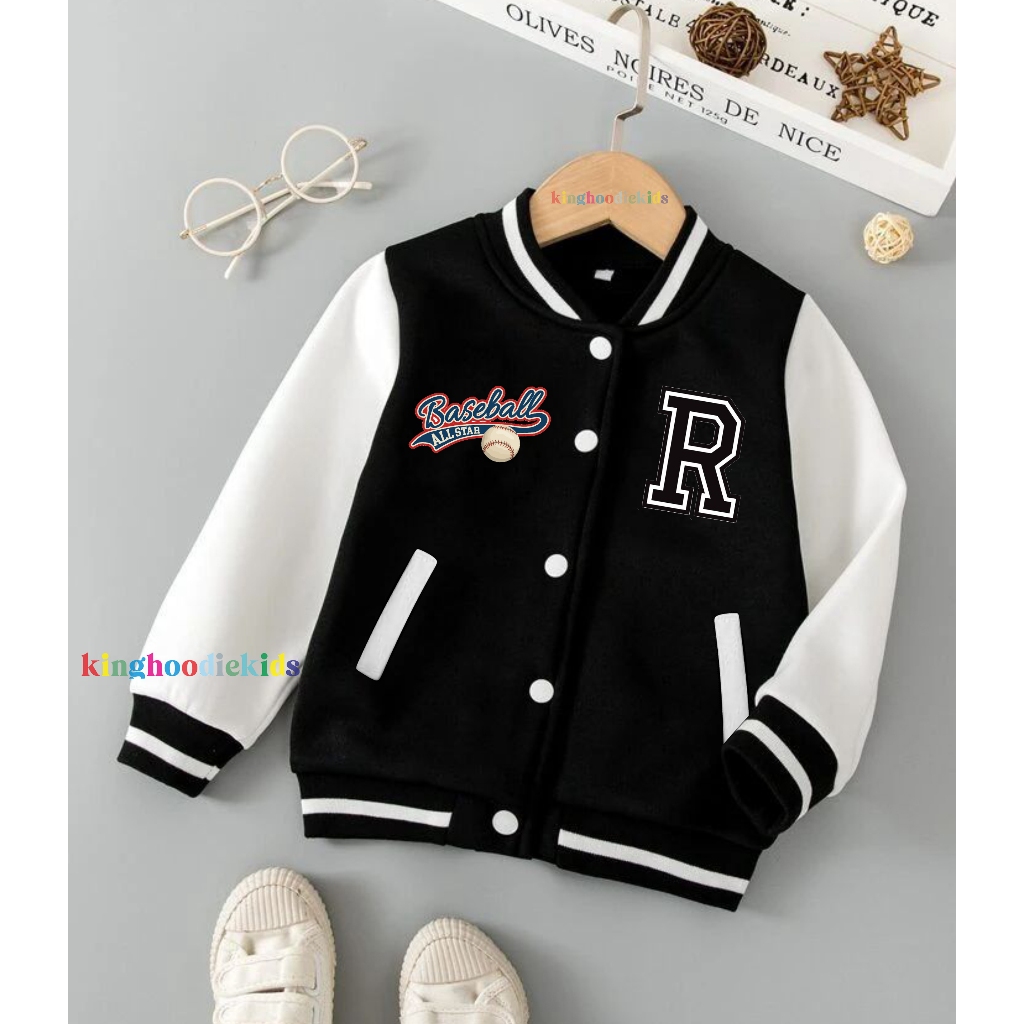 Jacket Baseball Varsity Anak Inisial R&A Laki Laki Perempuan Umur 2 Sampai 12 Tahun