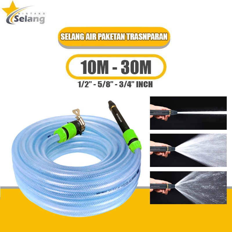 Bintang Paketan Selang Air 30 Meter Semprotan Air Watergun Jet Spray Dengan Selang Benang Transparan Cuci Mobil Siram Ta