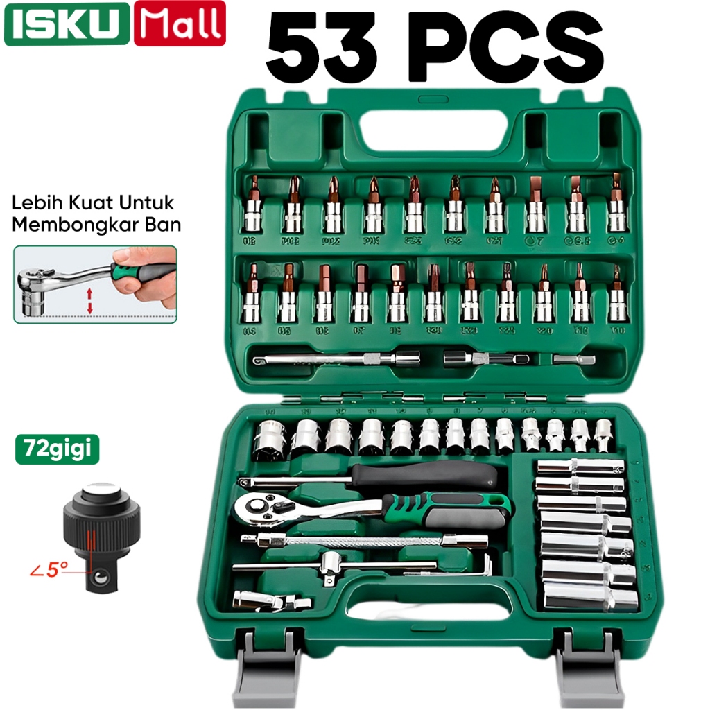 ISKU Kunci Sok Set 53pcs Kunci Shock Set Lengkap Kunci Mata Sok 53 PCS Set Socket (1/4 ") Full TOOL KIT 20PCS Kunci Mata