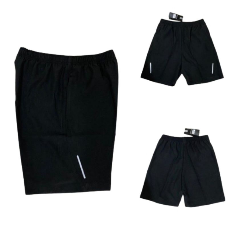 Celana Olahraga Pendek Pria Saku Resleting Parasut Mikro Elastis Lembut Lari Gym