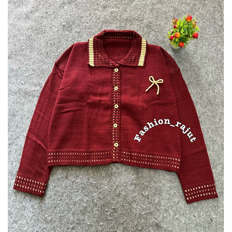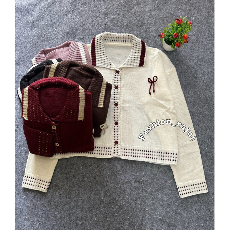 Atasan Rajut Wanita Bida Cardigan Rajut Variasi Pita Cantik Lucu
