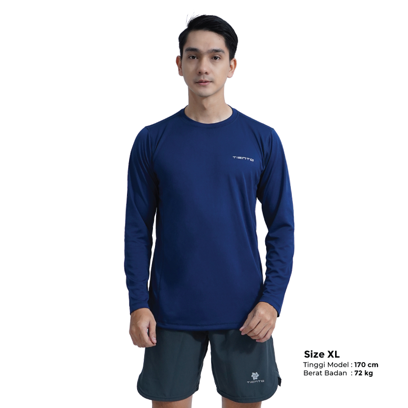Tiento Kaos Running Dry Fit Lengan Panjang Baju Olahraga Pria Lari Gym Fitness