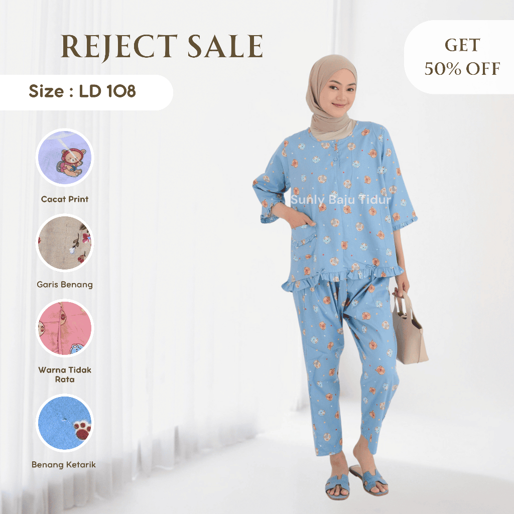 REJECT Baju Tidur Wanita Lengan 3/4 Celana Panjang | Set Baju Tidur Katun Dewasa | LD 108 CM