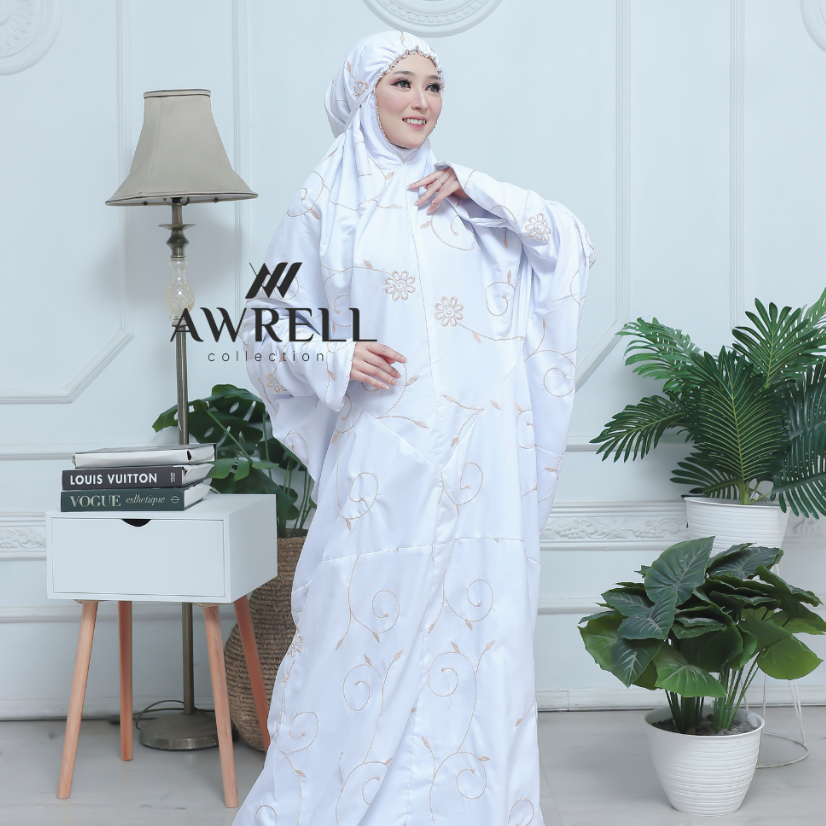 Awrellcollection - Mukena Terusan Dewasa Jumbo Bordir Gracella Katun Premium Lajuran
