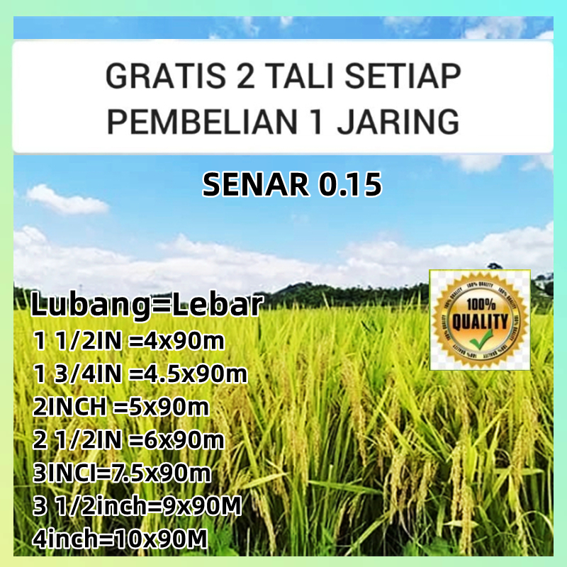 Jaring Padi Penutup Sawah Senar 0.15Mm/100X100 Yoko Jaring Burung Pipit Dan Emprit 90M