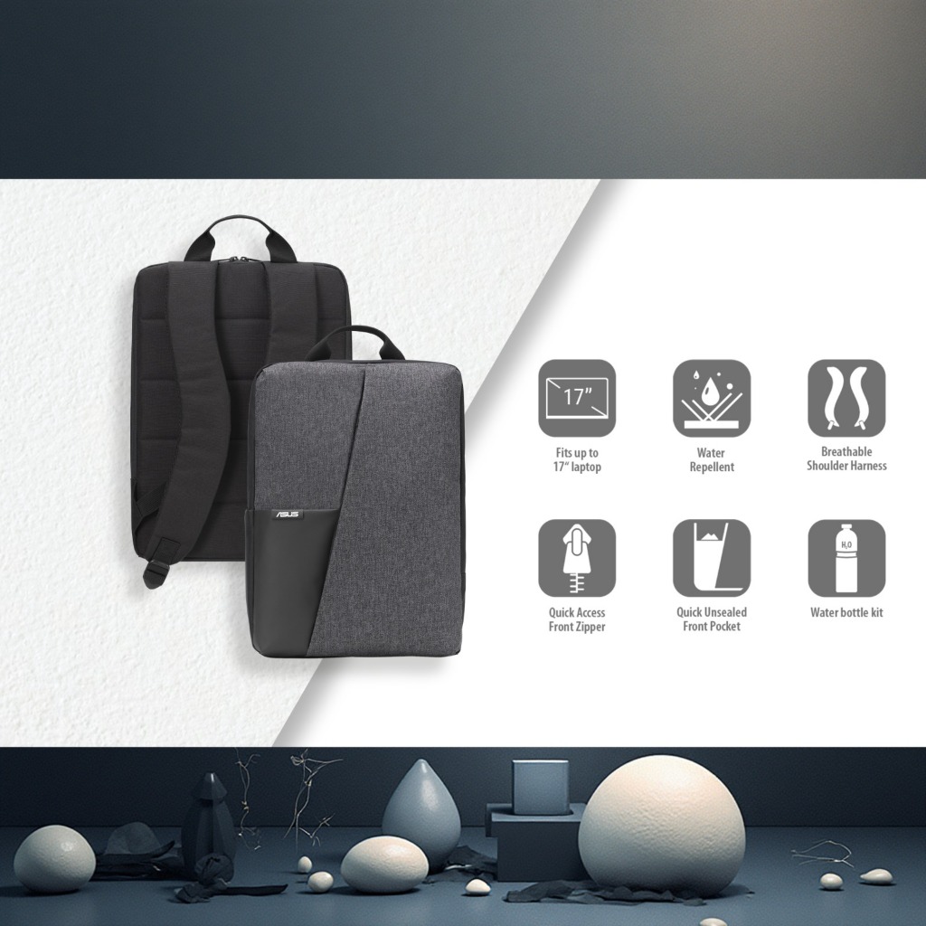 Tas Laptop Ransel Asus Baru Muat Hingga 17 Inch – Backpack Gendong Hitam Sekolah & Kantor | Desain Minimalis Bahan Tebal