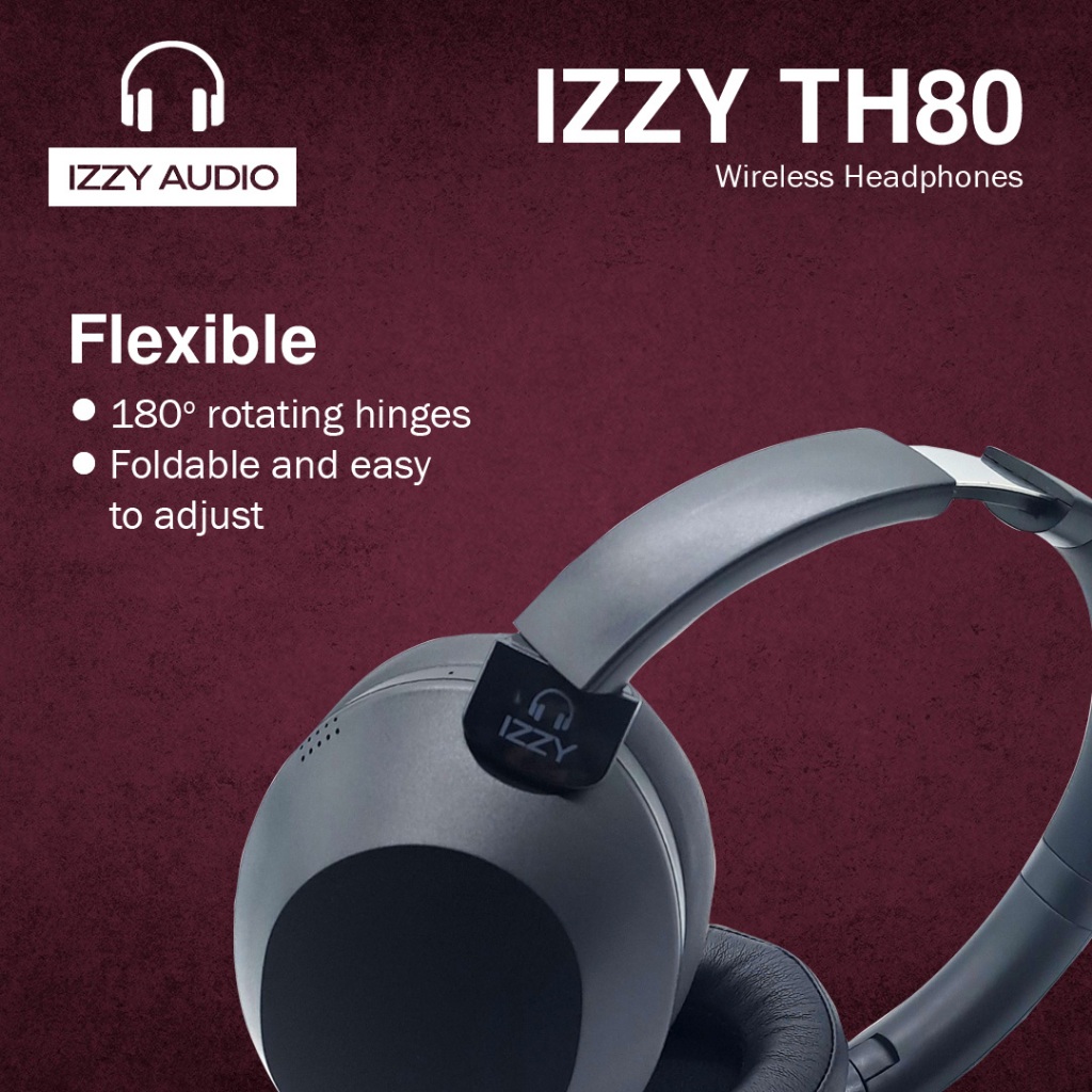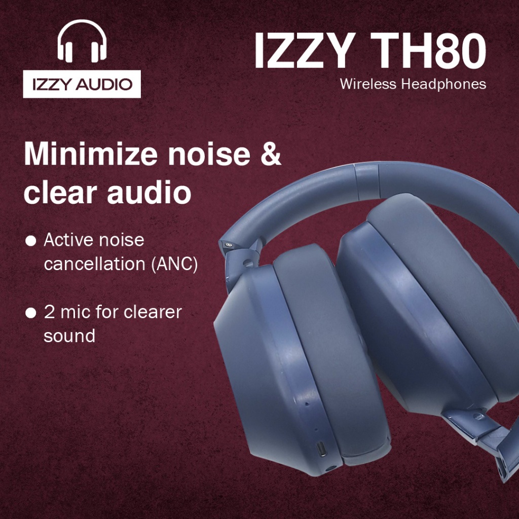 IZZY TH80 ANC Wireless Over-Ear Headphone Bluetooth Audio Bass Jernih