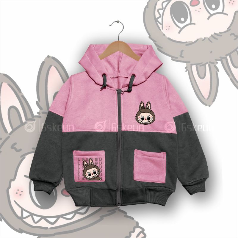 Sweater Hoodie Anak Zipper Resleting Laki-Laki Dan Perempuan Kombinasi Dua Warna Bahan Fleece Usia 2 Tahun Sampai 8 Tahun