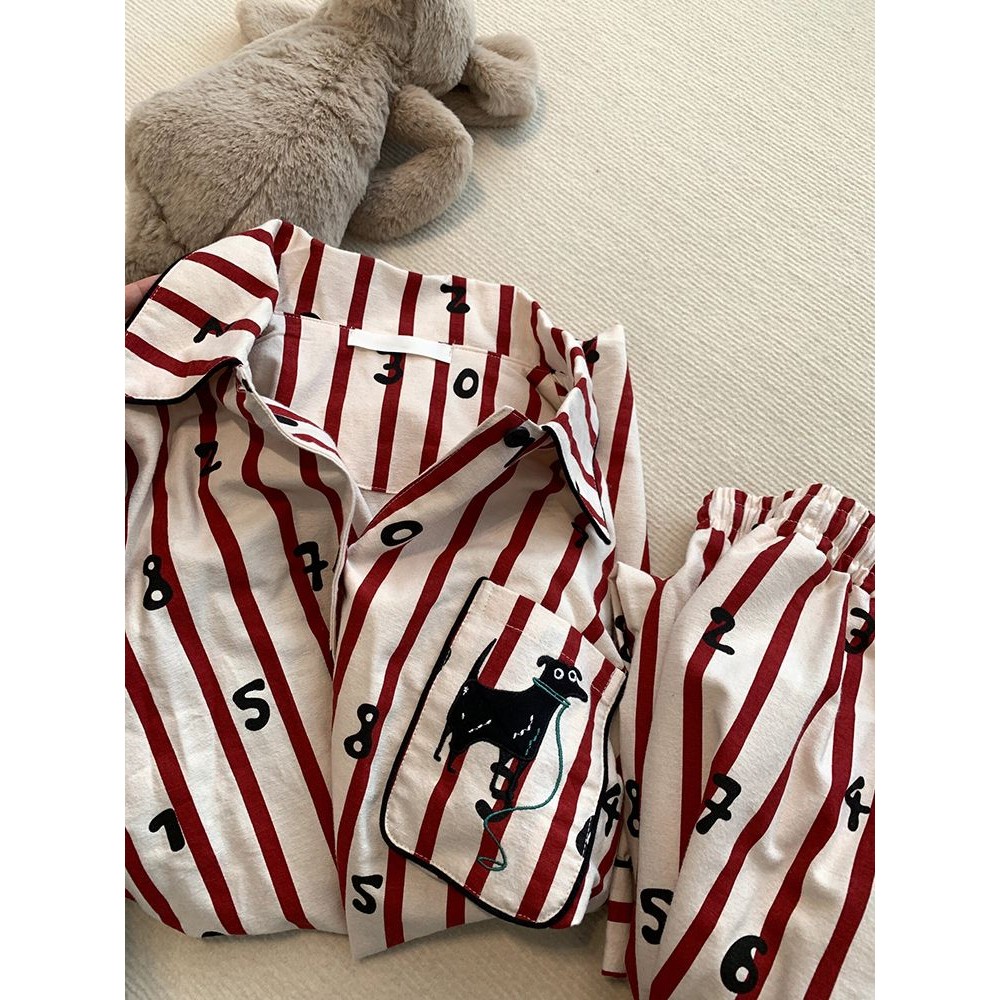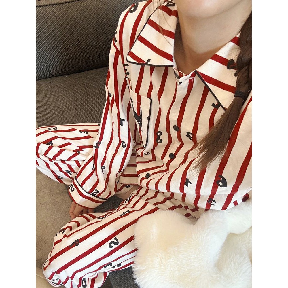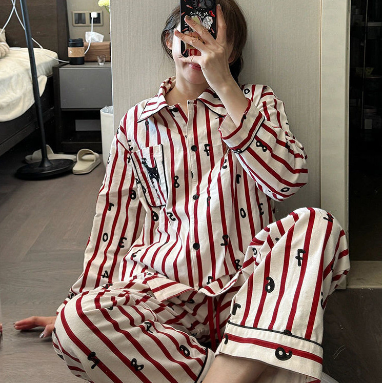 Slim Lift - Piyama Bergaris Merah Impor Lengan Panjang Dan Celana Panjang Pakaian Rumah Pernikahan
