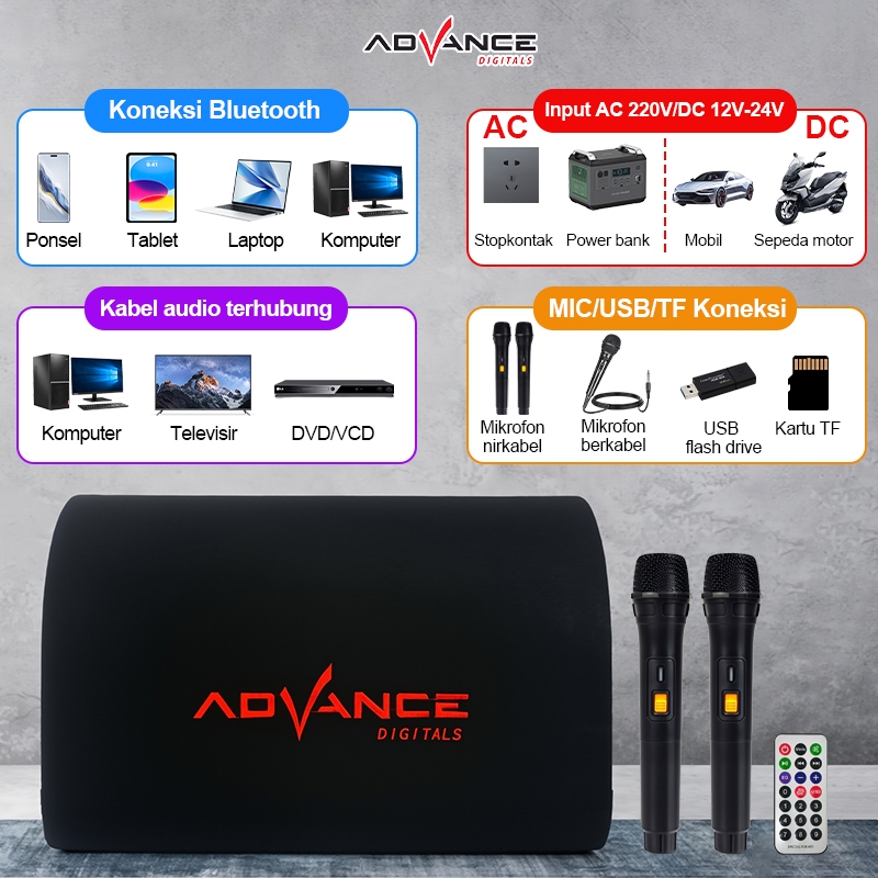 Bisa Advance Speaker Subwoofer Portable T-105BT PRO Speaker Bluetooth Bass Speaker Karaoke Memberikan Mikrofon Garansi Resmi 1 Tahun