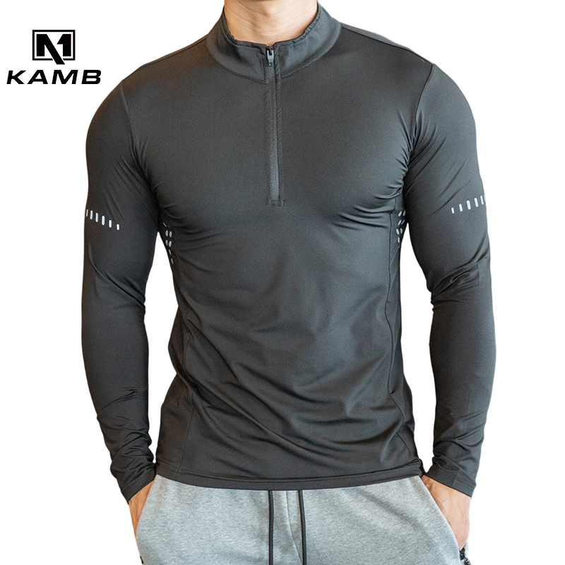 KAMB Kaos Lengan Panjang Olahraga Pria Half Zipper Gym Running