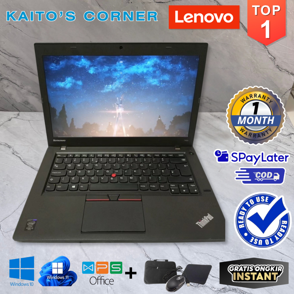 [Bekas] Laptop Lenovo Thinkdpad T450 & T450s Core i5/i7 Gen 5 - SUPER MULUS - Layar 14" Inch - Cocok buat Kuliahan / Kantoran / Gaming - Bonus Tas
