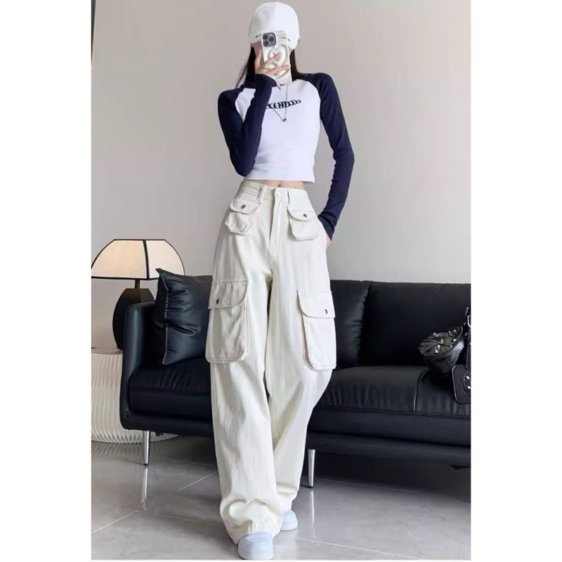 CELANA CARGO KOREAN STYLE KREM PASIR PUTIH / CELANA CARGO LOOSE