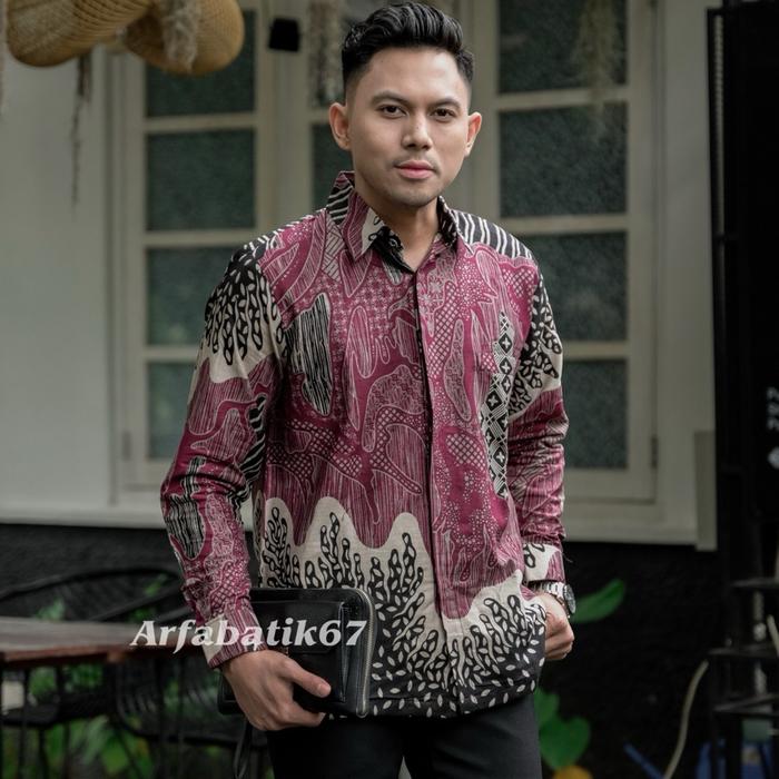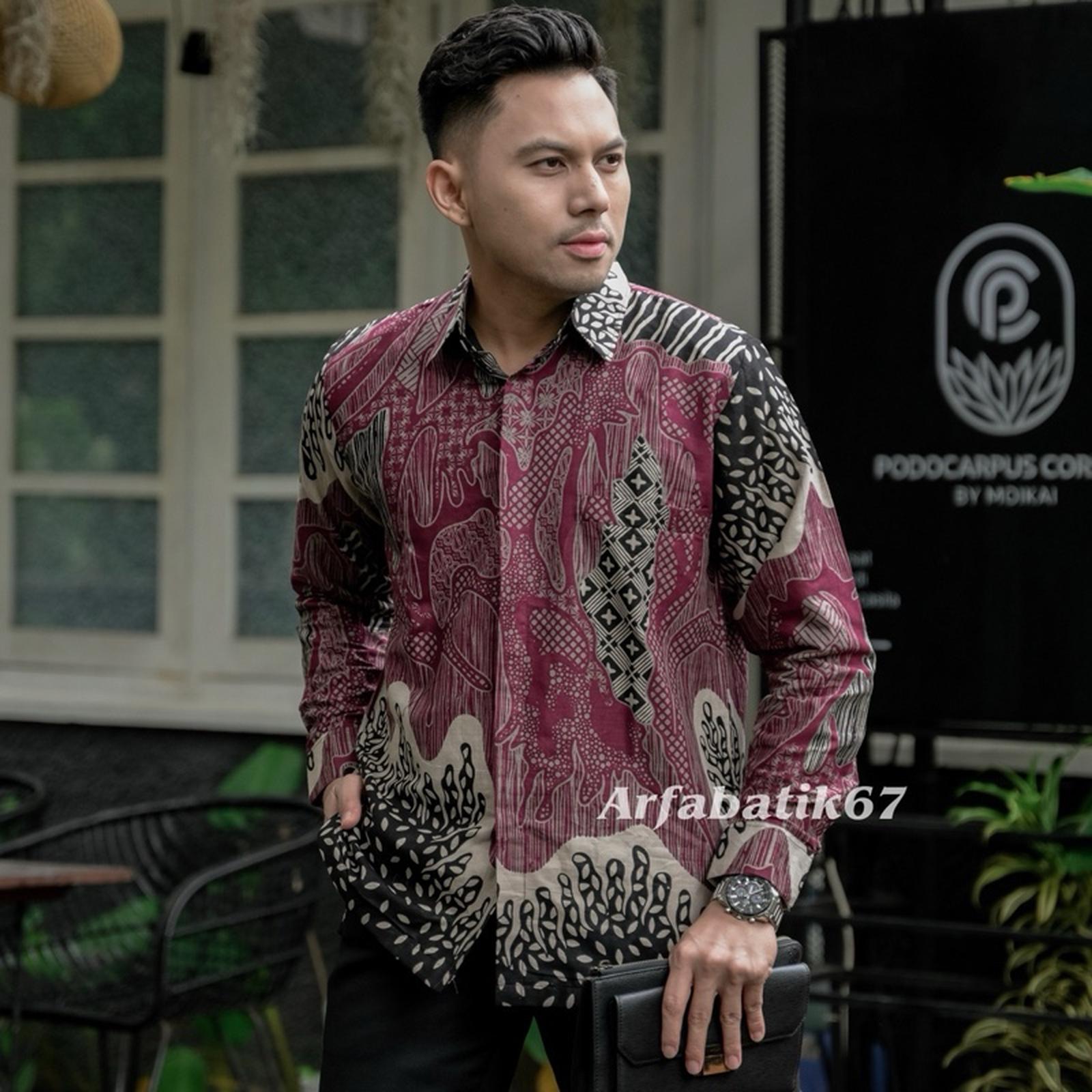 NEW BURGUNDY motif SAKA Baju batik pria tangan panjang dan pendek katun prima premium lapis furing hero
