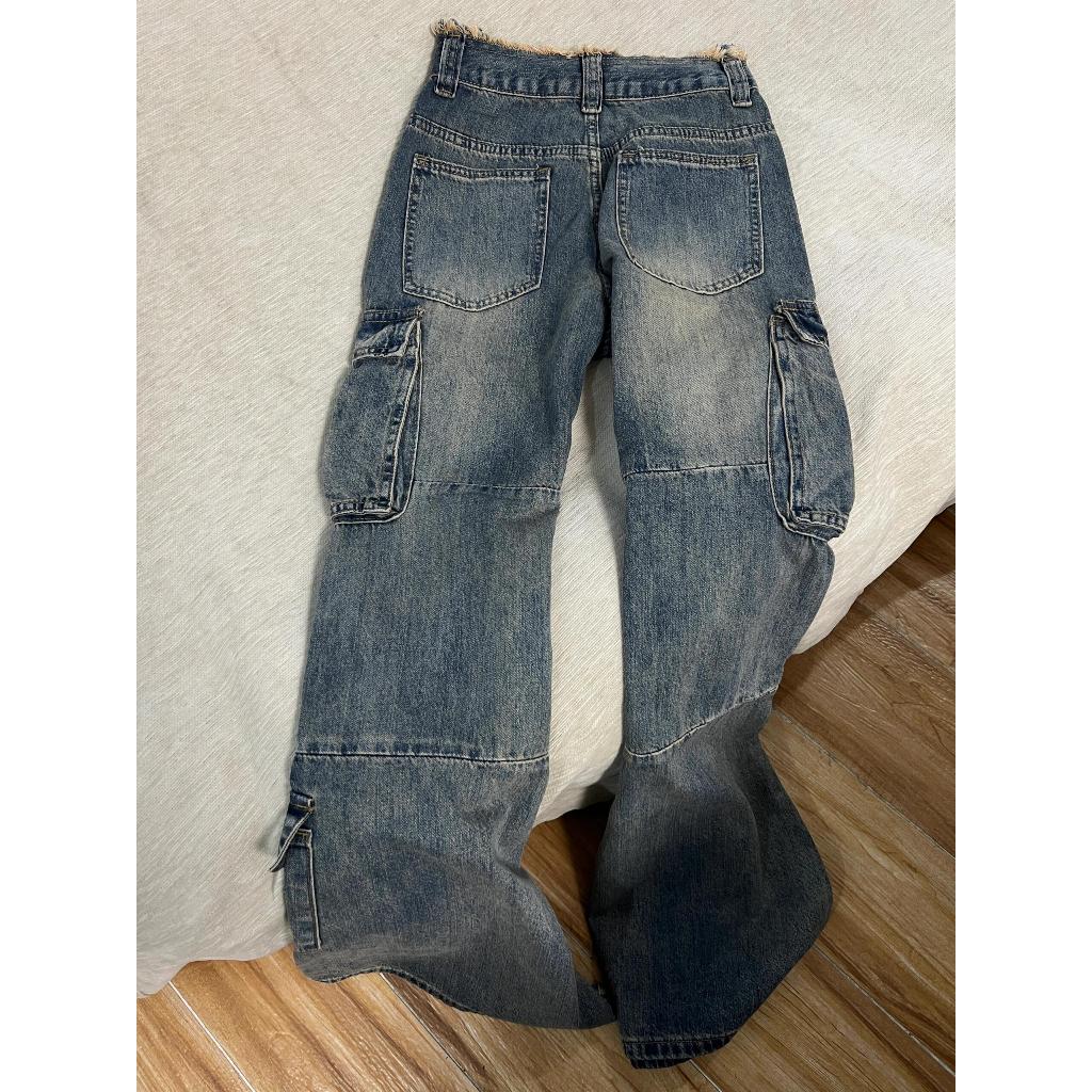 Biru retro Cargo Jeans Korea Style Highwaist Loose Celana Jeans Wanita