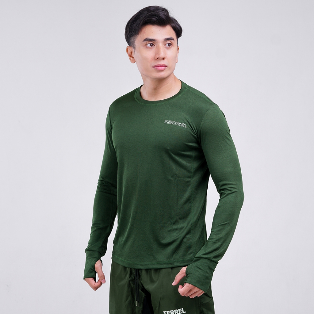 Terrel sportswear basic long sleeve green baju atasan lengan panjang kaos olahraga dry fit pria lari running gym