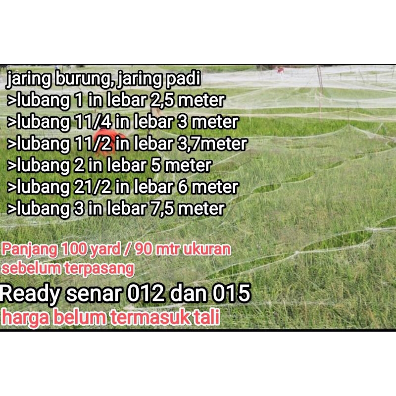 Jaring Burung, Jaring Padi, Jaring Pengaman Padi, Ukuran Lengakap Tinggal Pilih