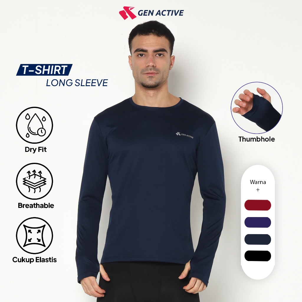 Gen Active Kaos Olahraga Pria Lengan Panjang Baju Sport Dry Fit Running Gym