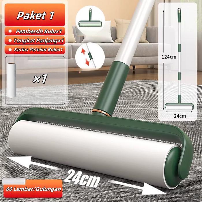 Rol Pembersih Debu & Bulu 24cm Rol Pembersih Multifungsi dengan Gagang Adjustable - Paket Hijau 1