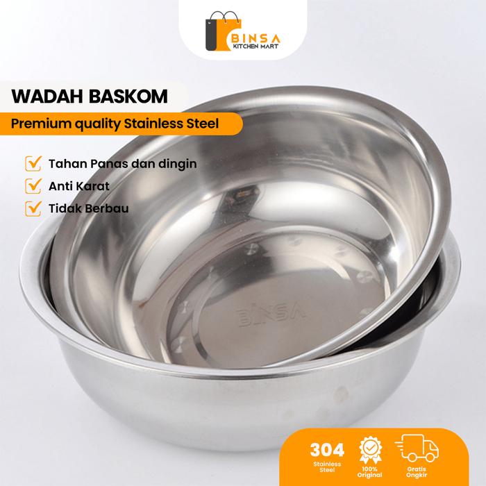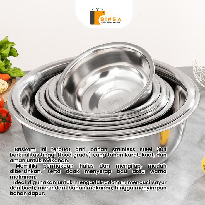 BINSA - Baskom Stainless Steel Ukuran Kecil Besar Mangkok Tebal Buah Sayur Makanan 612 - 18CM