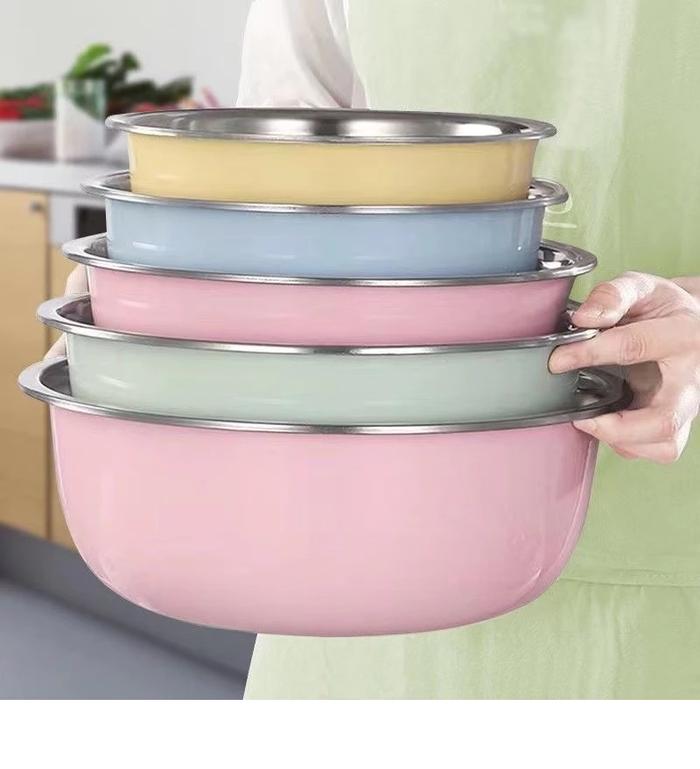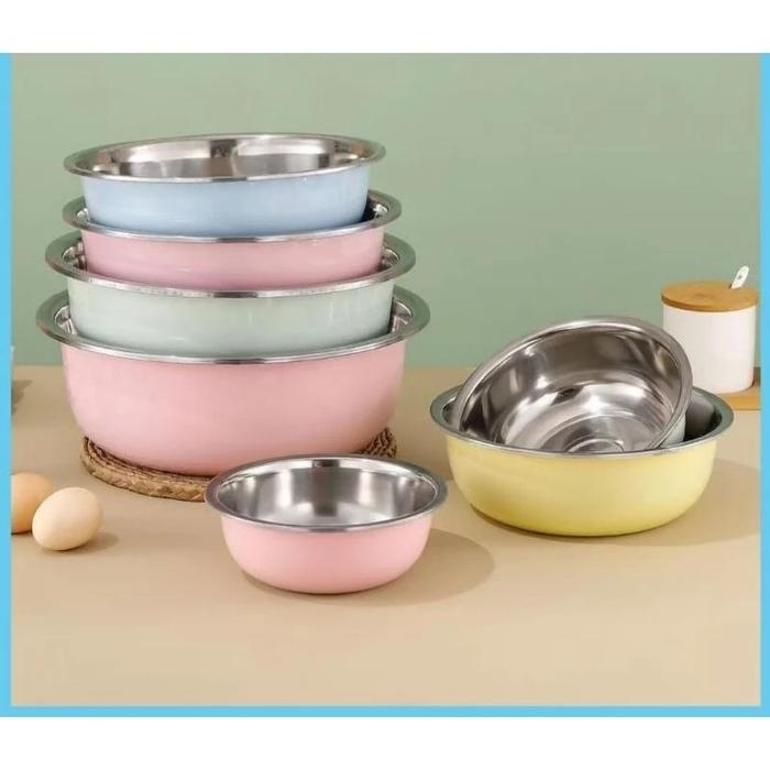 5 Pcs Baskom Stainless Warna 5 in1 - Baskom Warna Stainless Multifungsi Anti Karat - ZS - Baskom Warna