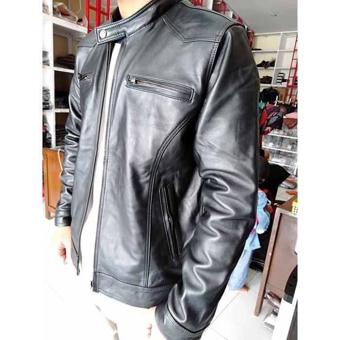 Jaket kulit pria domba asli Garut cowok motor Coklat Hitam Casual Keren Distro Tebal Formal Kerja