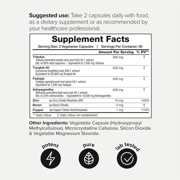 Toniiq Testosterone Support Elite T Formula - 120 Capsules, Tribulus + Tongkat Ali + Fadogia +