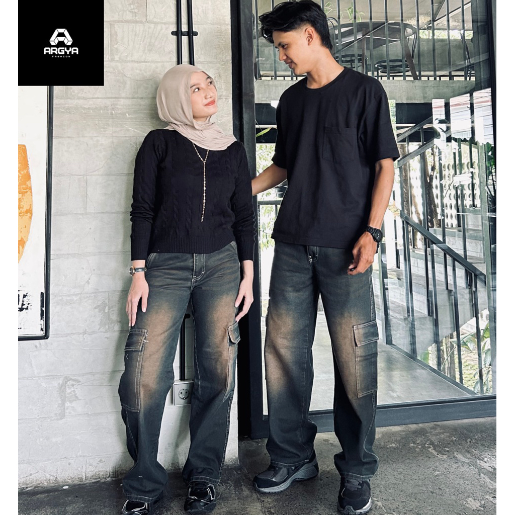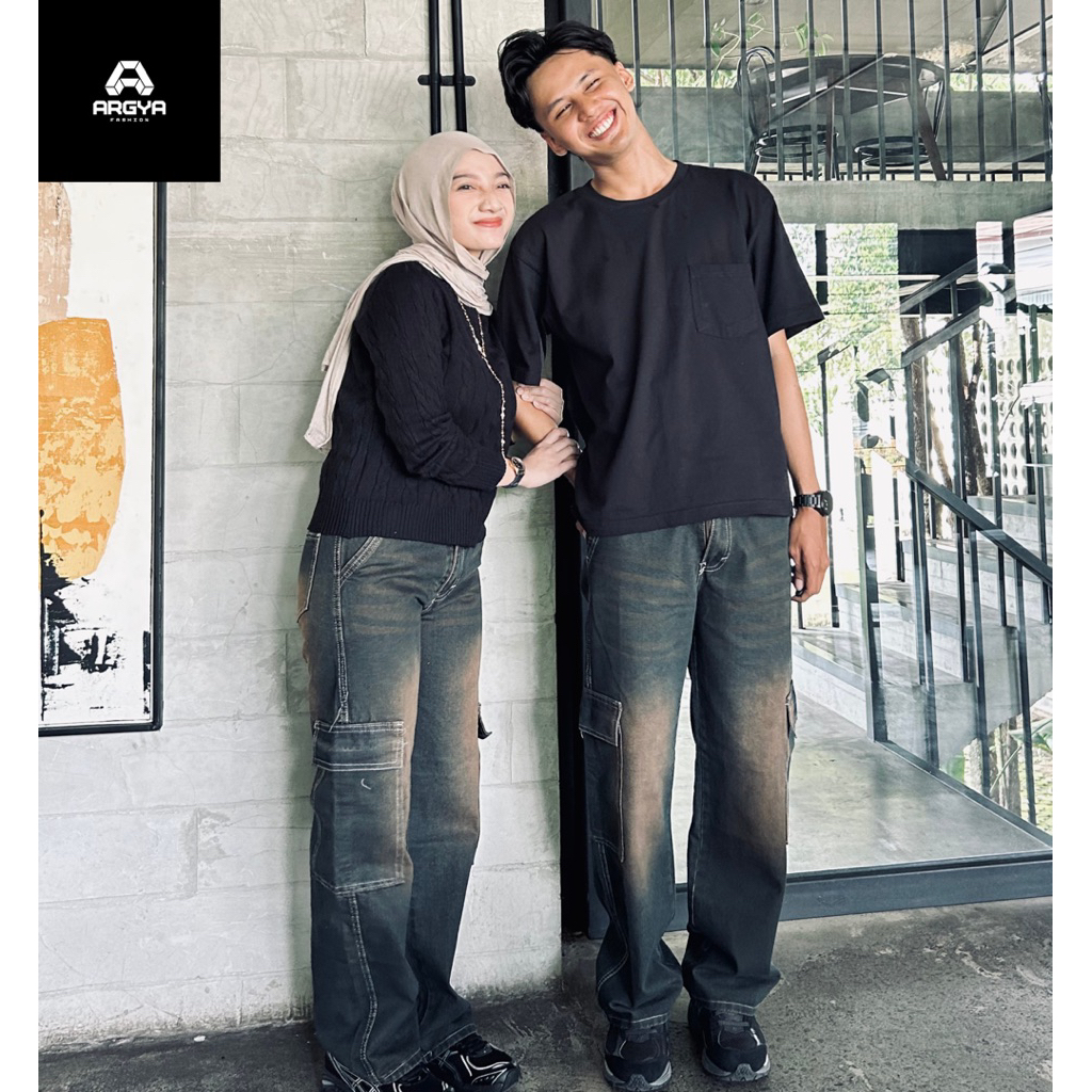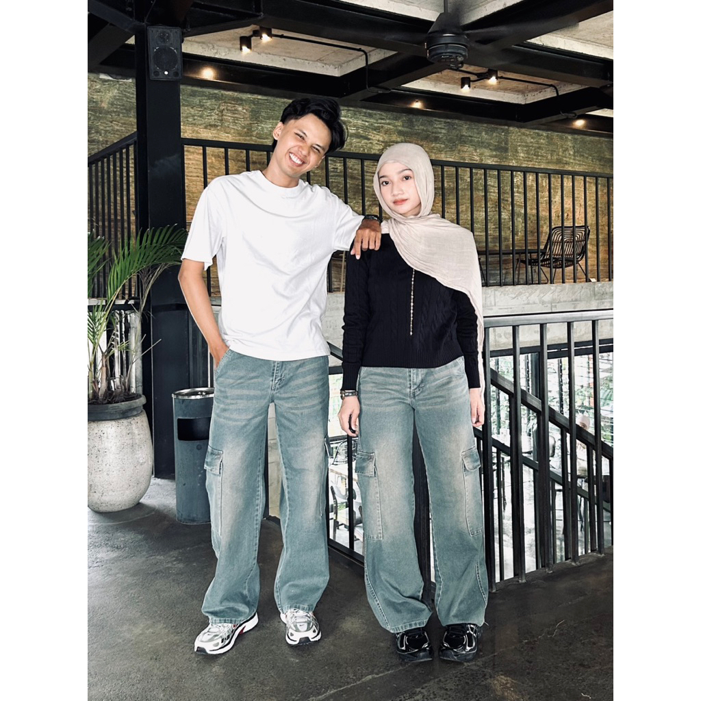 (Unisex) celana highwaist cargo jeans,celana kulot jeans,korean baggy vintage retro
