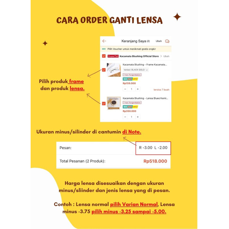 KACAMATA BLUSHING – Lensa Photocromic Minus 0,25 sampai 3.00 Silinder 1,75 Anti UV