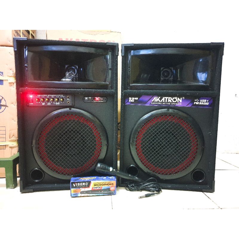 AKATRON PAKET KARAOKE + MIC + SPEAKER AKTIF BLUETOOTH 12 INCH SUPER BASS SUBWOOFER DAPAT 2 BOX BESAR