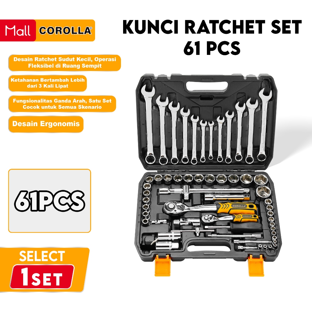 Corolla Set Perlengkapan Kunci Ratchet Cocok untuk Perbaikan Mobil, Pemasangan Peralatan Rumah Tangga dan Perawatan Mesi