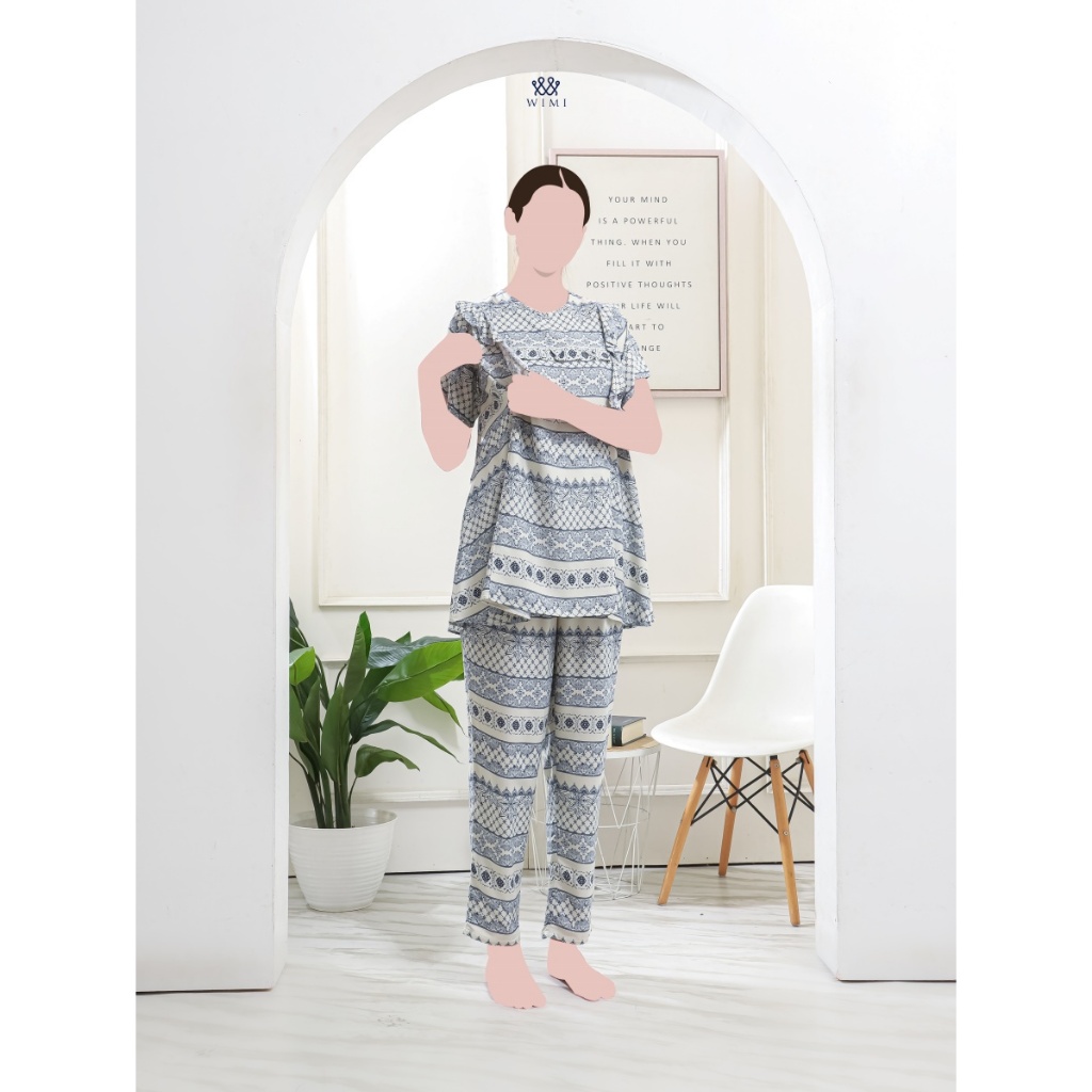 Wimi.id - Setelan Pajamas Oneset KIMORA Baju Wanita Ibu Hamil dan Menyusui Katun Rayon Premium