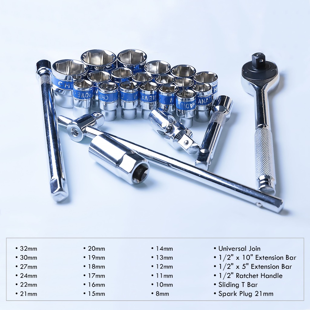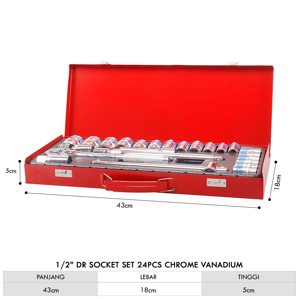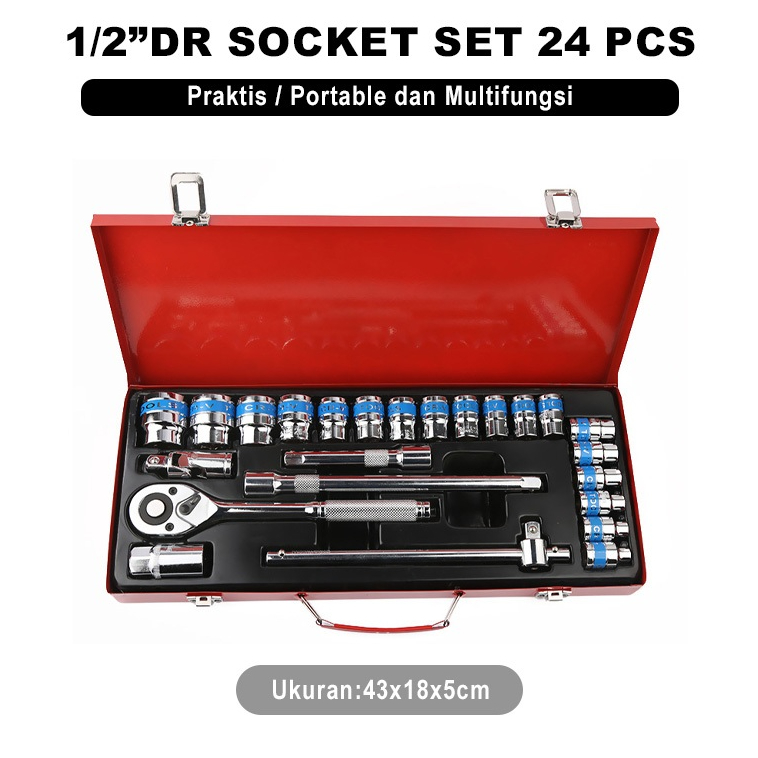 Kunci Socket Set 24pcs 1/2" Shock Tool Box Kit Pas Socket 8-32mm / Alat Bengkel Perbaikan Mobil G1M1