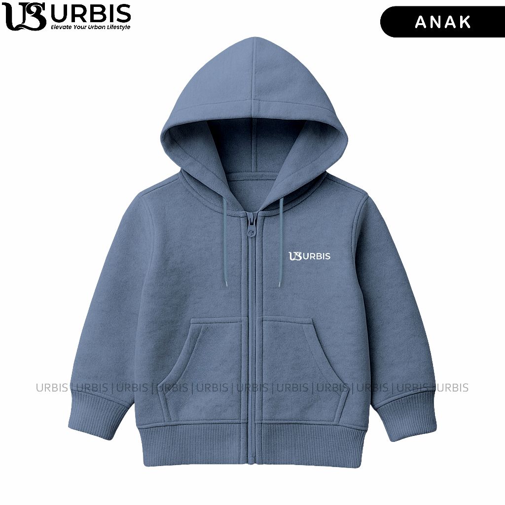 Jaket Zipper Anak Laki-Laki Perempuan Urbis Untuk Usia 3-13 Tahun Sablon New Urbis Fleece Tebal